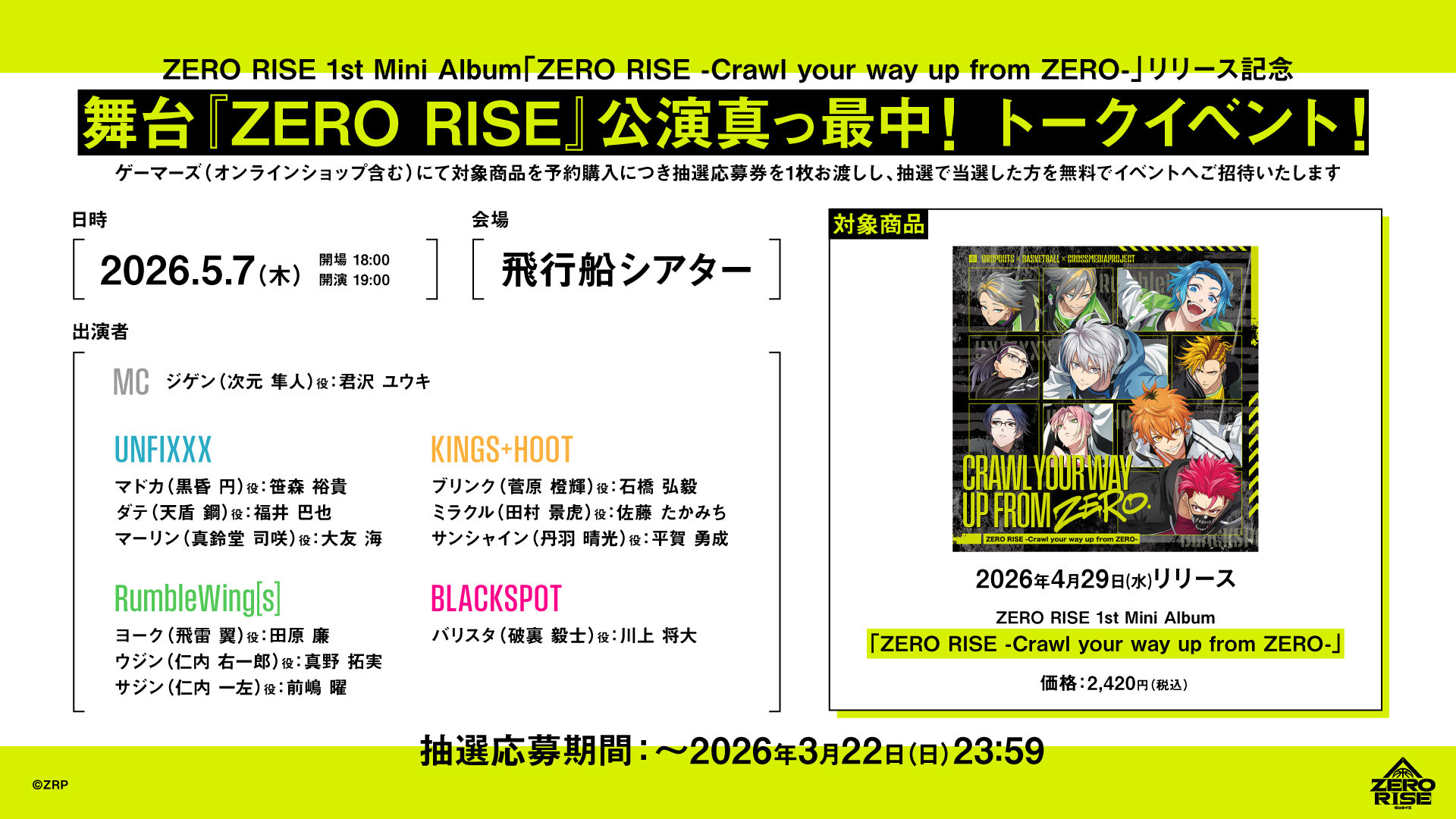 2026年4月29日(水)ZERO RISE 1st Mini Album『ZERO RISE -Crawl your way up from ZERO-』のリリースを記念し、「舞台『ZERO RISE』公演真っ最中!トークイベント!」の開催が決定しました!